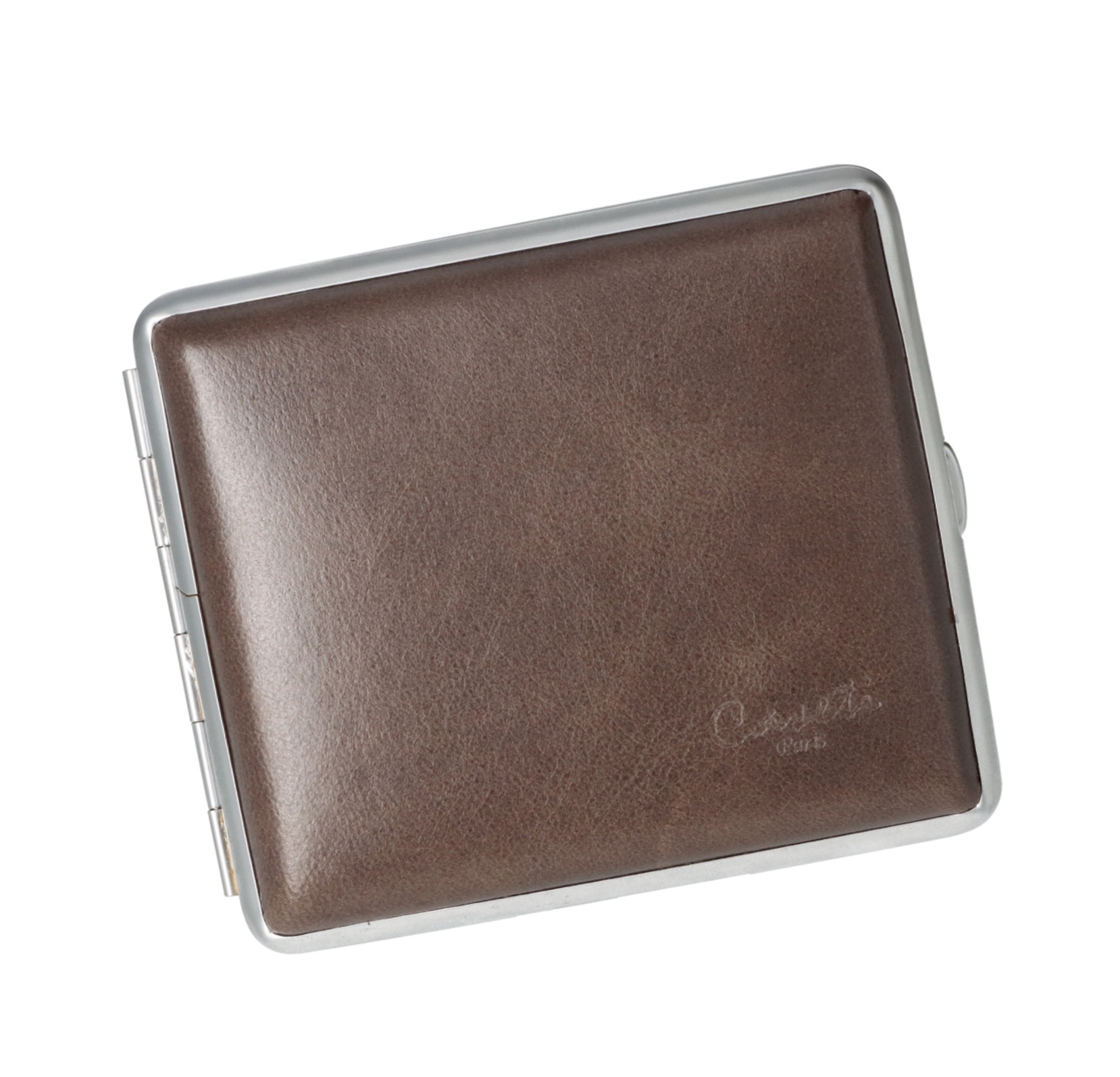Zigarettenetuis von Caseti aus Leder oder Chrom.