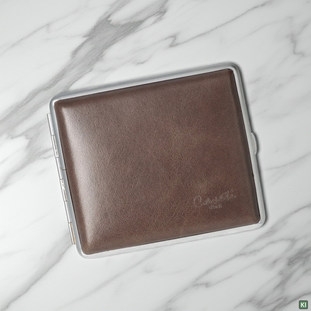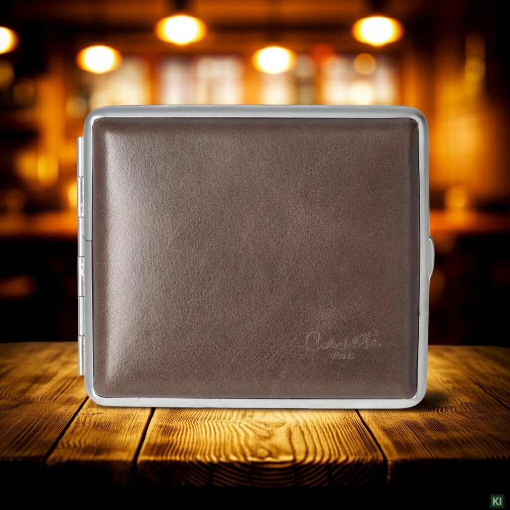 Caseti Zigaretten Etui in Echtleder mit verchromten Metall-Rahmen für 18 Zigaretten mit Gummiband-Halterung.Zigarettenetuis sind im Trend, da sie nicht nur die lästigen Schockbilder auf den Zigarettenschachteln vergessen machen, sondern sie sehen auch noch edel aus. Im Gegensatz zu Zigarrenboxen werden Sie in edlen Materialien und im edlen Design verkauft. Meist sind die klassischen Zigarettenetuis rechteckig, mit abgerundeten Kanten und lassen sich durch Drücken des Verschlussknopfes aufklappen. Im Etui befinden sich geschickte Gummizüge mit denen die Zigaretten festgehalten werden.