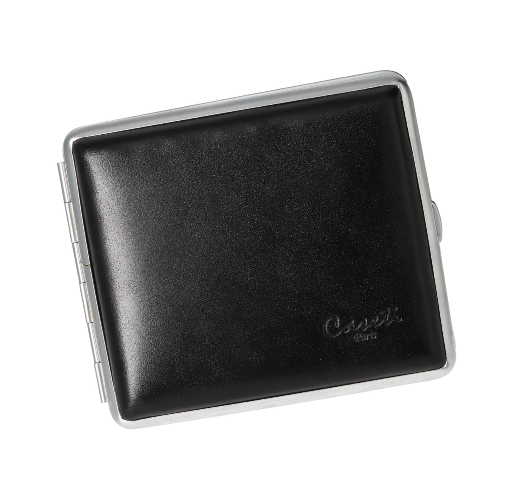 Zigarettenetui Caseti Paris in Leder schwarz und verchromtem Rahmen 18er