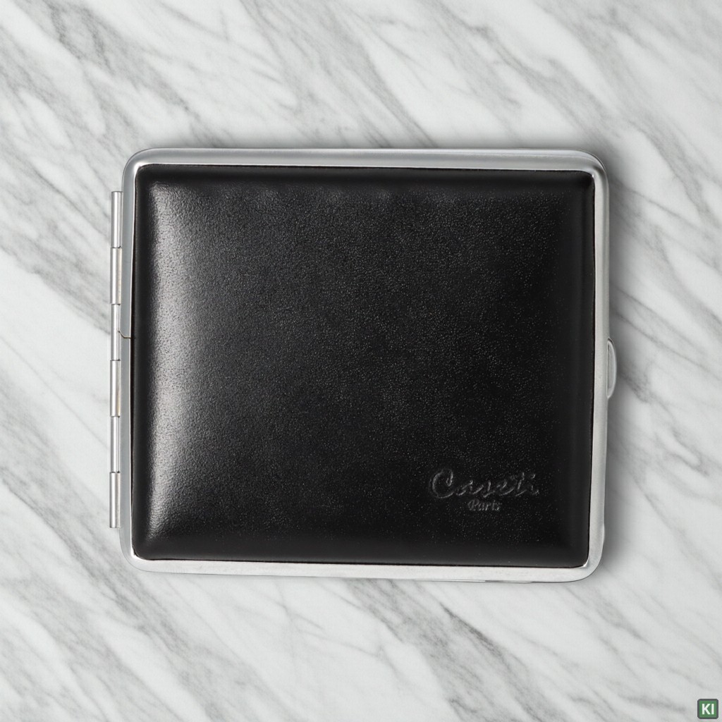 Zigarettenetuis von Caseti aus Leder oder Chrom.