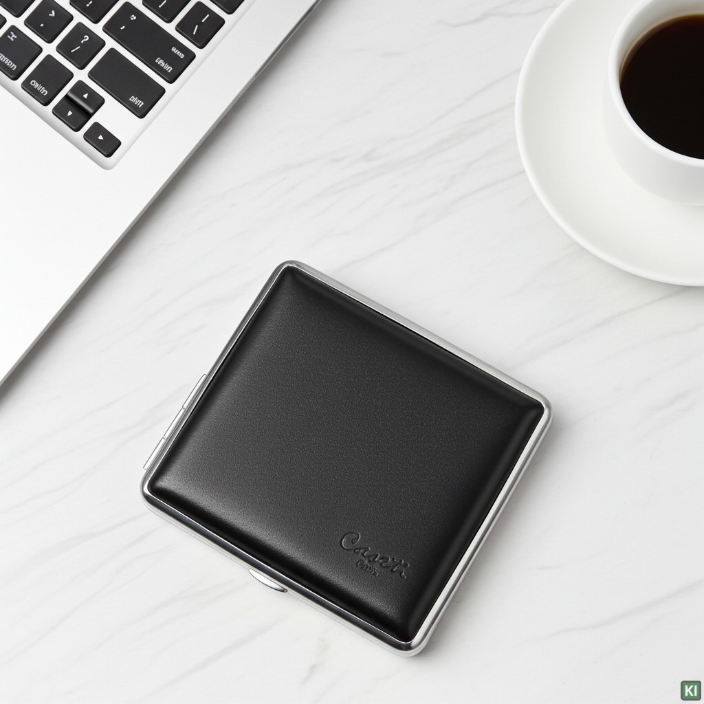 Zigarettenetui Caseti Leder schwarz 18er auf dem Tisch - © raucher-xxl.de