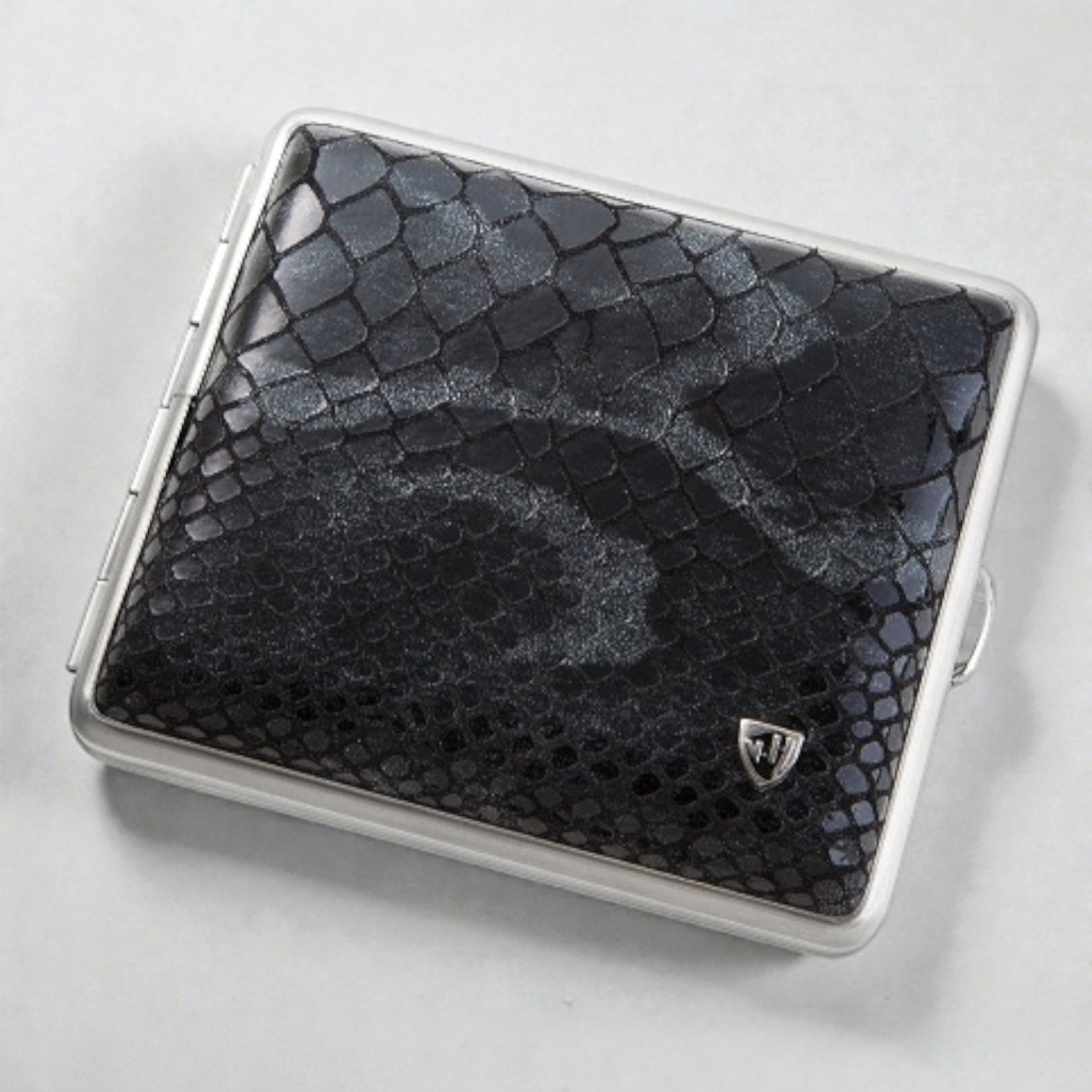 Zigarettenetui vom Hofe Leder Schlange schwarz mit Chromrand 18er - © raucher-xxl.de