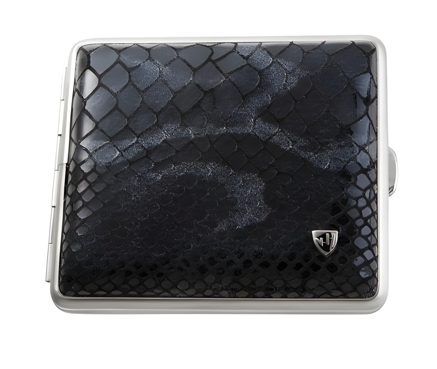 Zigarettenetui vom Hofe Leder mit Prägung Schlange schwarz mit verchromtem Rahmen 18er