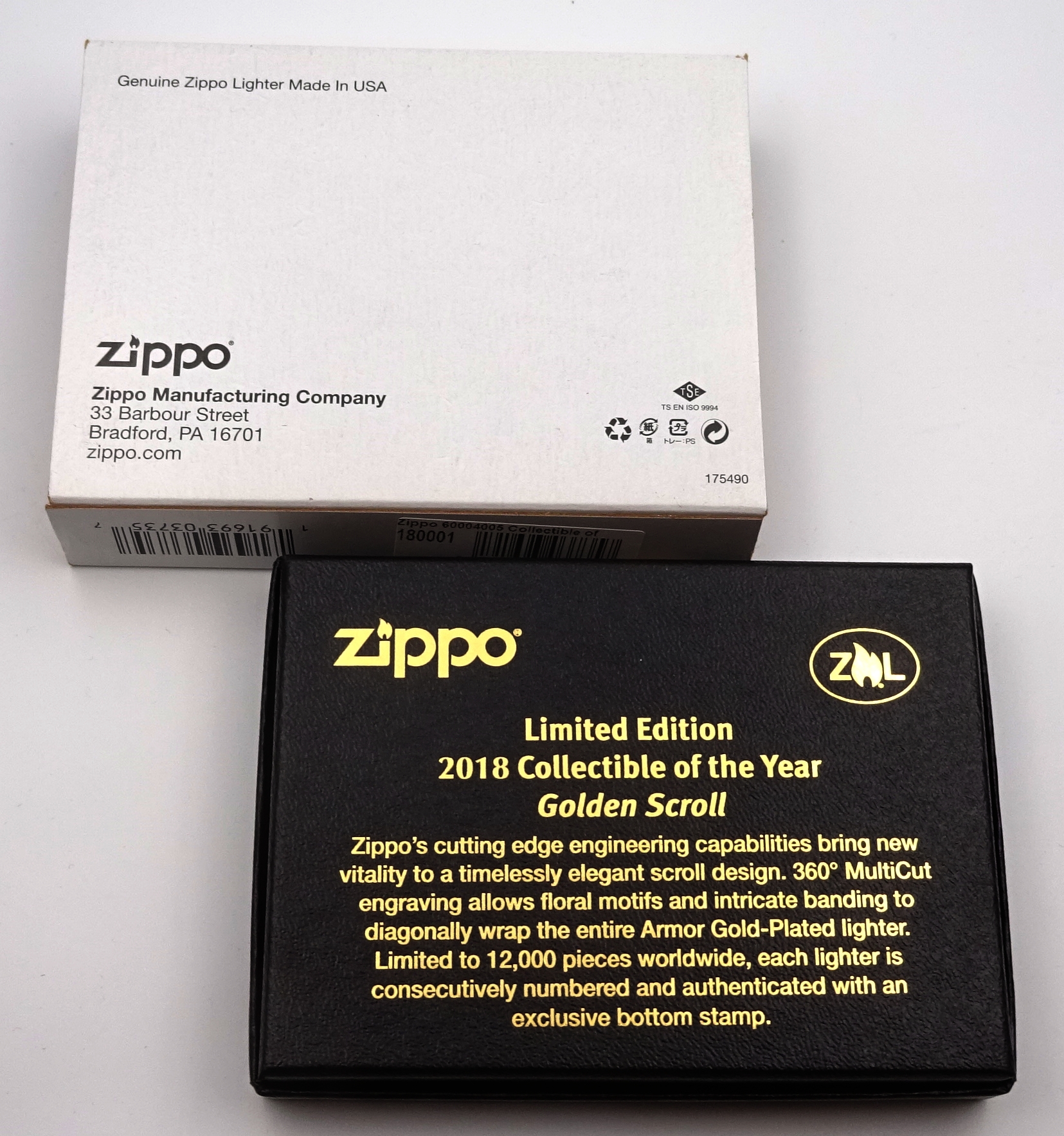 Zippo 2018 Collectible of The Year Golden Scroll - Limited Edition 60004005 - Rarität - Sammler-Sturmfeuerzeug
