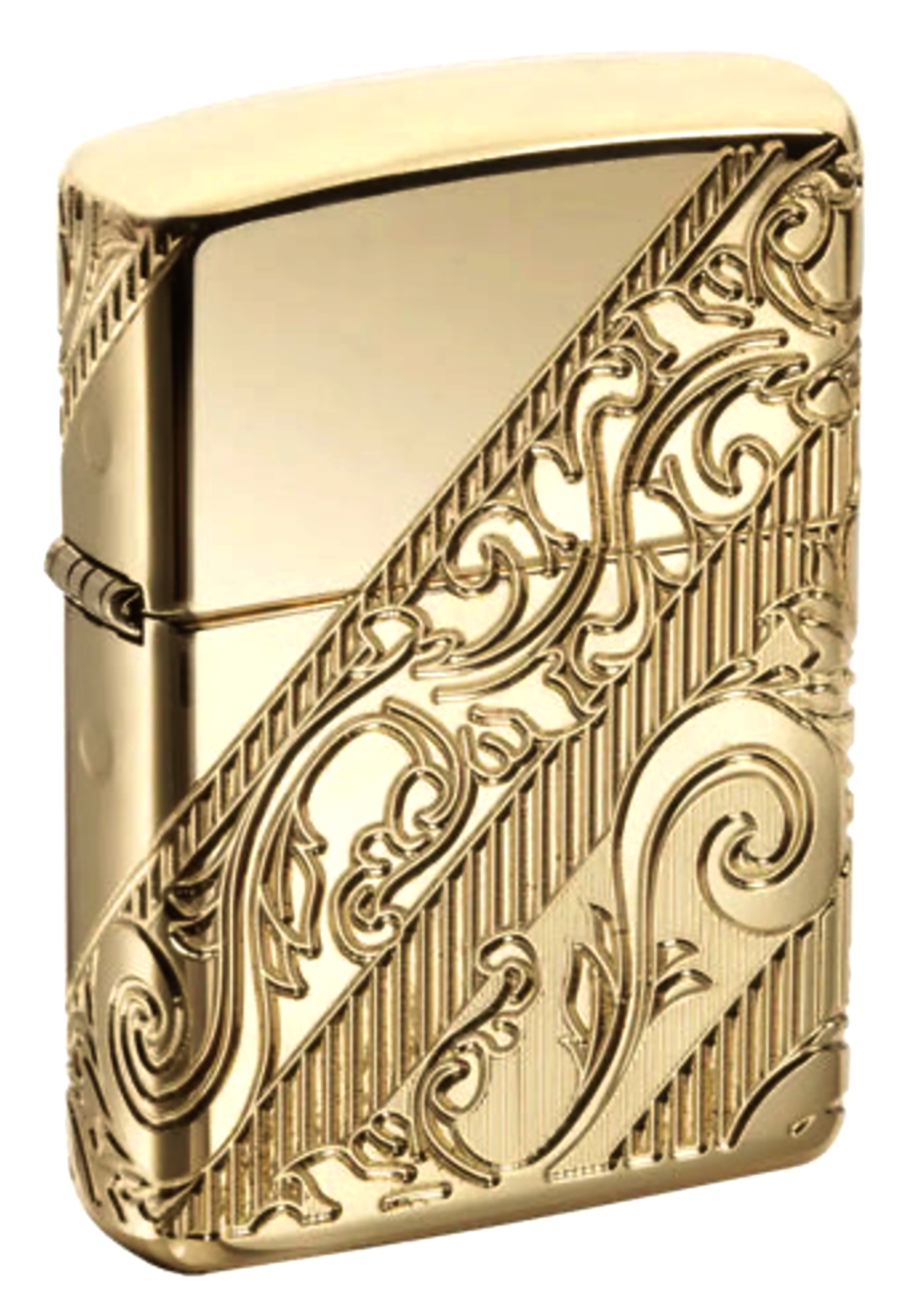 Das Golden Scroll Feuerzeug, das Sammlerstück des Jahres 2018, besticht durch Eleganz. Zippos innovative Ingenieurskunst verleiht dem zeitlosen Design neue Vitalität. Dank der 360°-MultiCut-Gravur umhüllen florale Motive und filigrane Bänder das gesamte Armor Gold-Plated Feuerzeug diagonal. Ein passender Einsatz und eine luxuriöse Box runden den Look ab. Jedes Feuerzeug ist weltweit auf 12.000 Exemplare limitiert und fortlaufend nummeriert sowie mit einem exklusiven Bodenstempel authentifiziert.