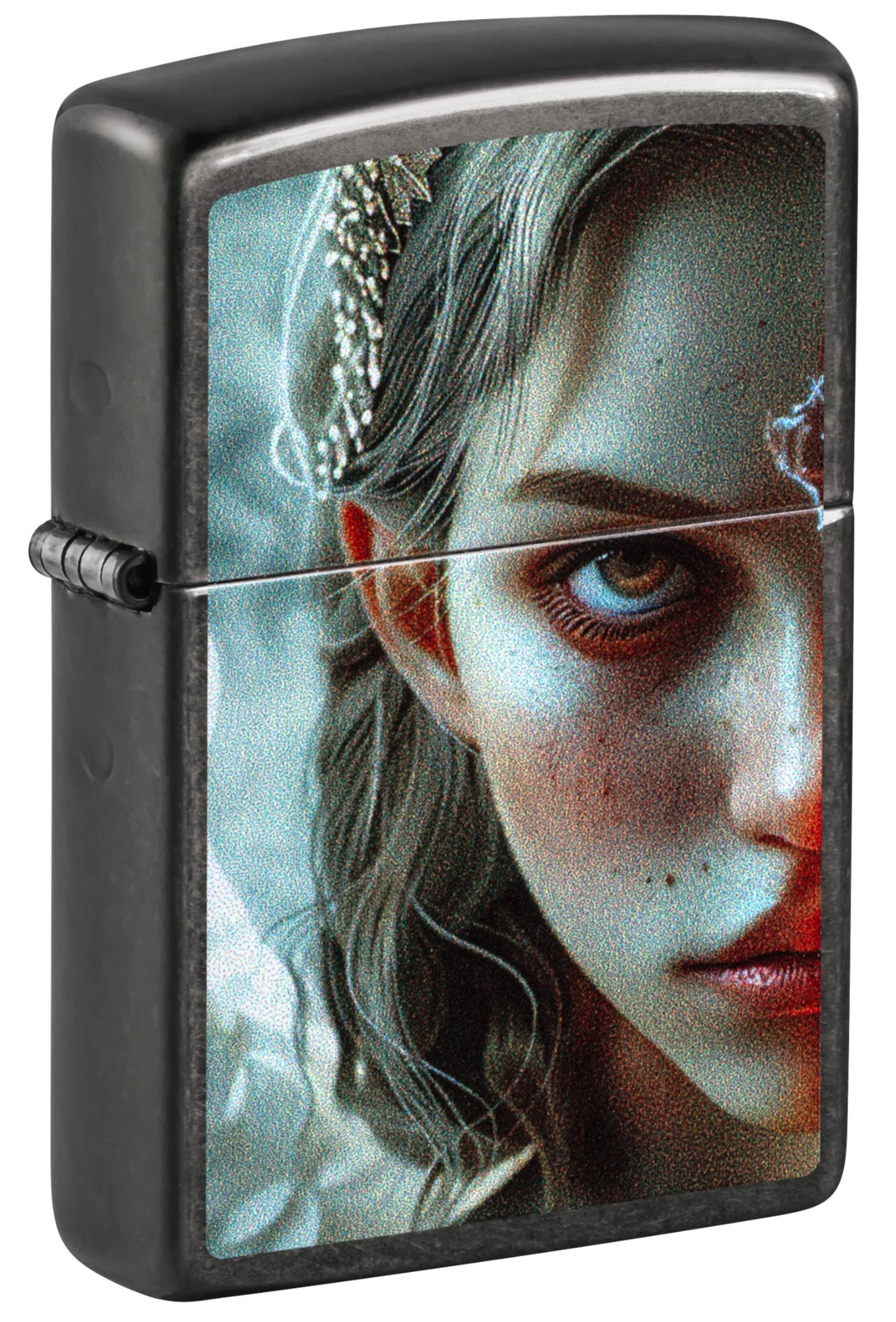 Zippo Angel Devil Grey in grau matt mit beidseitigem Color Image - Sturmfeuerzeug mit Steinzündung und Softflamme