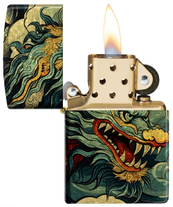 Zippo Colourful Dragon fliegender Drache Feuerzeug offen - © raucher-xxl.de