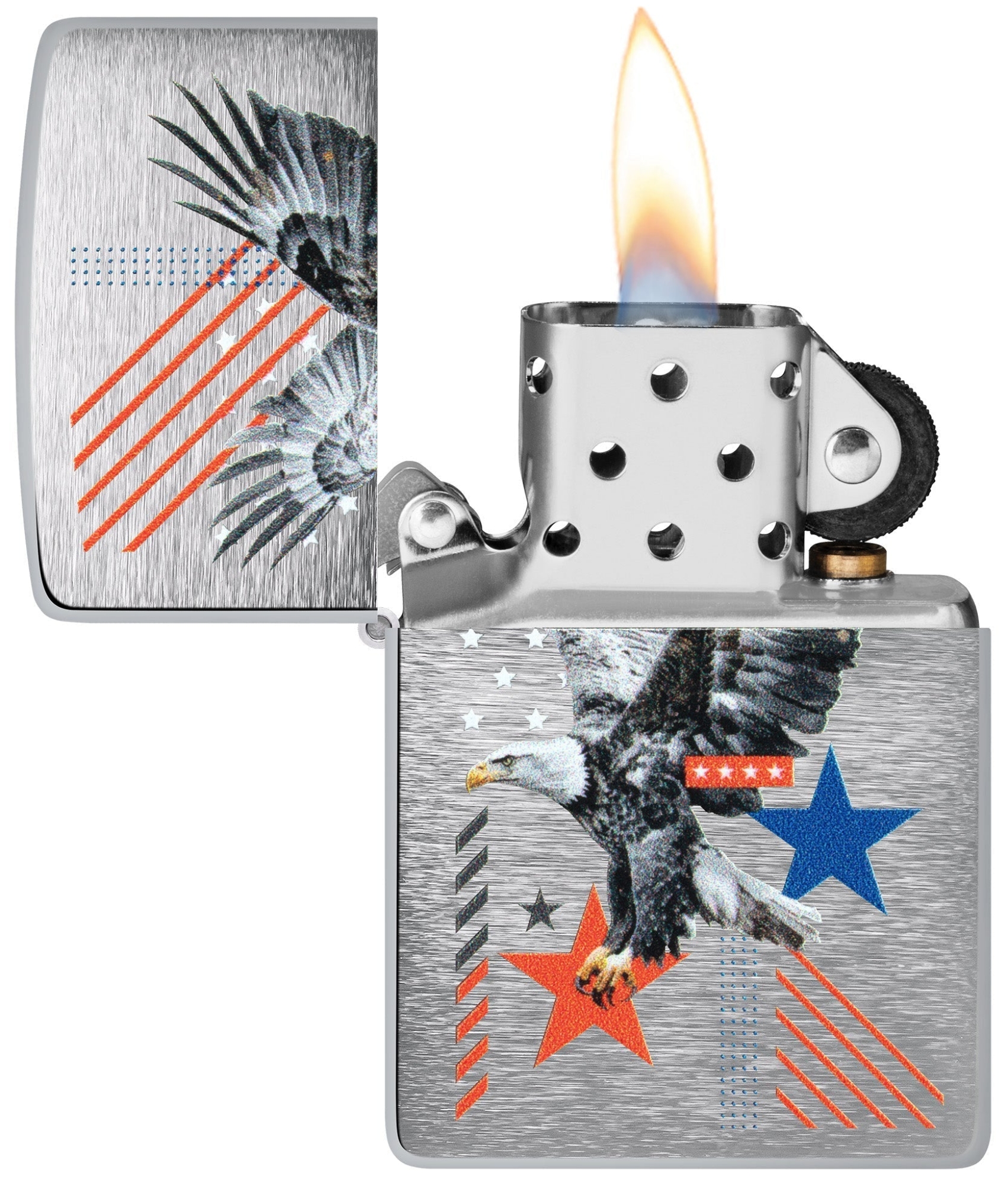 Zippo Eagle and Stars mit Americana-Motiv Feuerzeug offen - © raucher-xxl.de