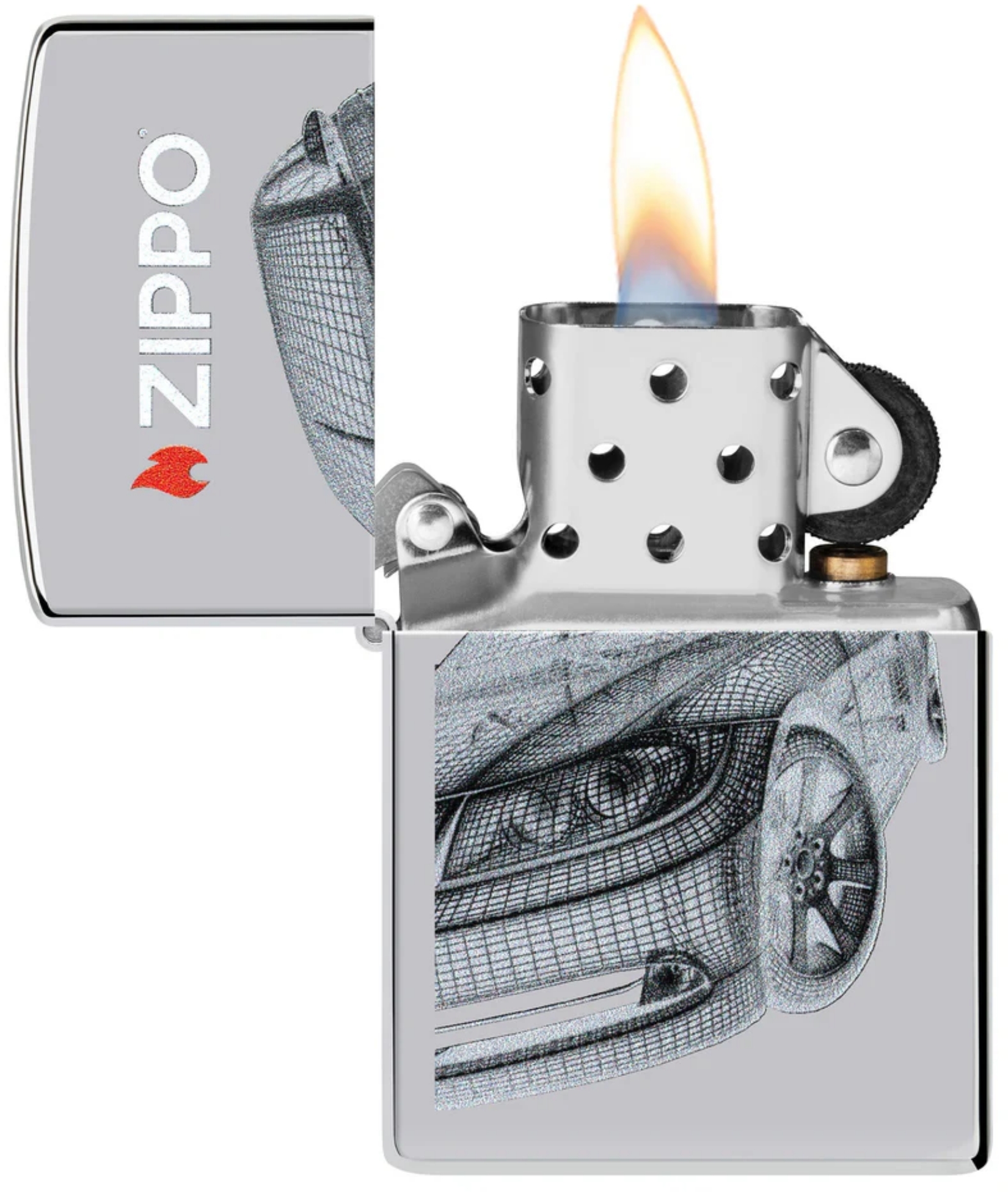 Zippo Modern Car 2 Chrom poliert Feuerzeug offen - © raucher-xxl.de