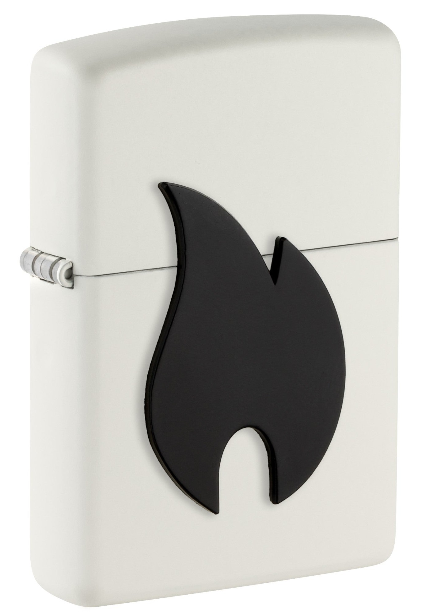 Startseite » Feuerzeuge » Zippo Feuerzeuge » Zippo Sturmfeuerzeuge » Neuheiten 2026 » Zippo Schwarzes Flammenemblem weiss matt - 2008153