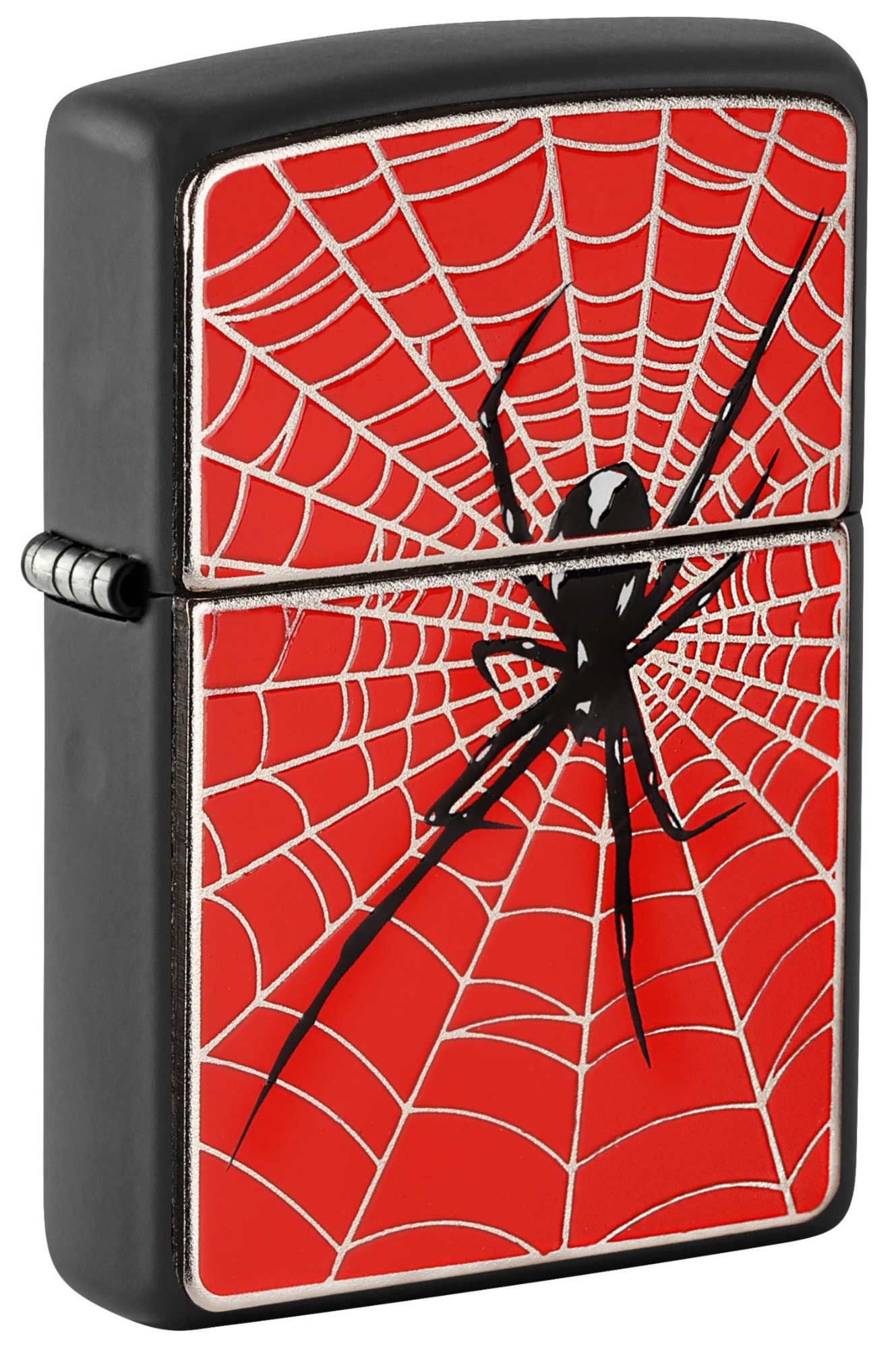 Zippo Spider Web Red schwarz matt mit Spinnennetz Emblem rot - 2008088