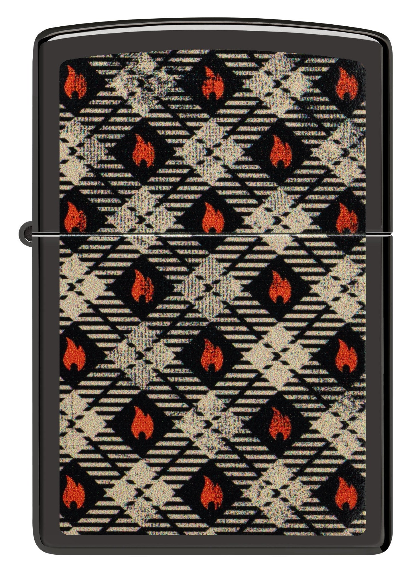 - Oberfläche: mit Karomuster und Zippo-Flammensymbolen bedruckt