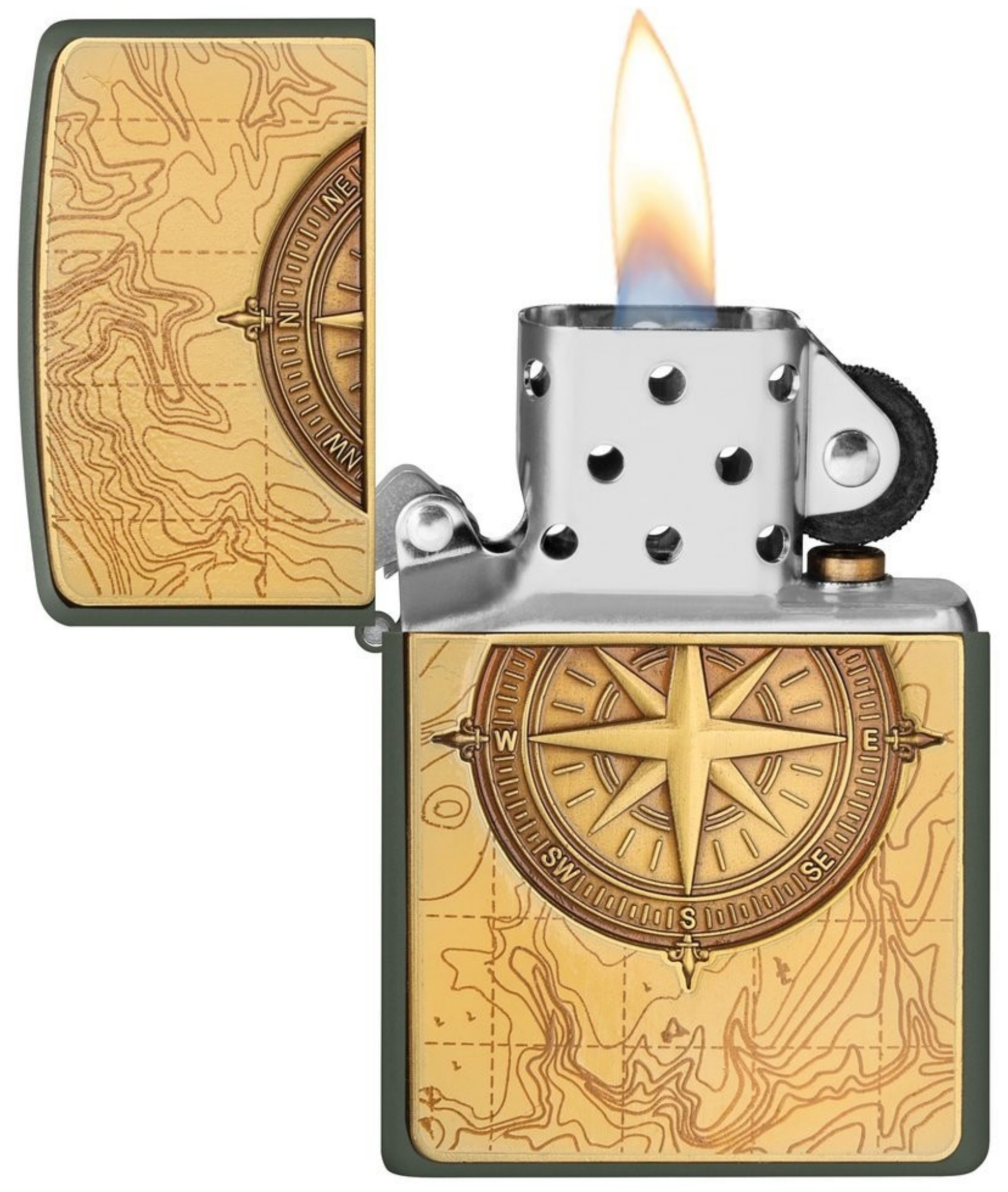 Zippo Topographic Compass grün matt Feuerzeug offen - © raucher-xxl.de