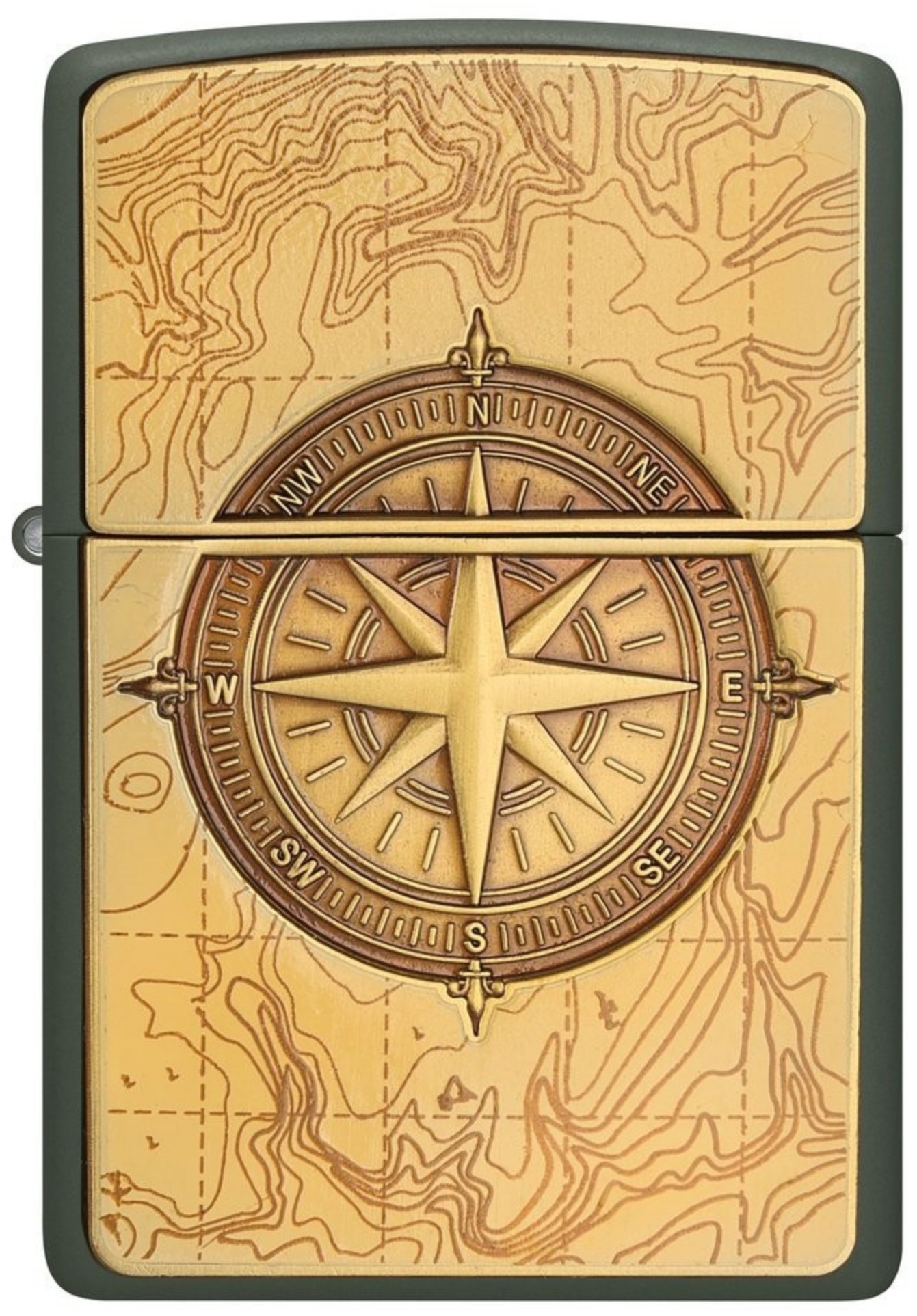 Zippo Topographic Compass grün matt Feuerzeug vorne Feuerzeug vorne - © raucher-xxl.de