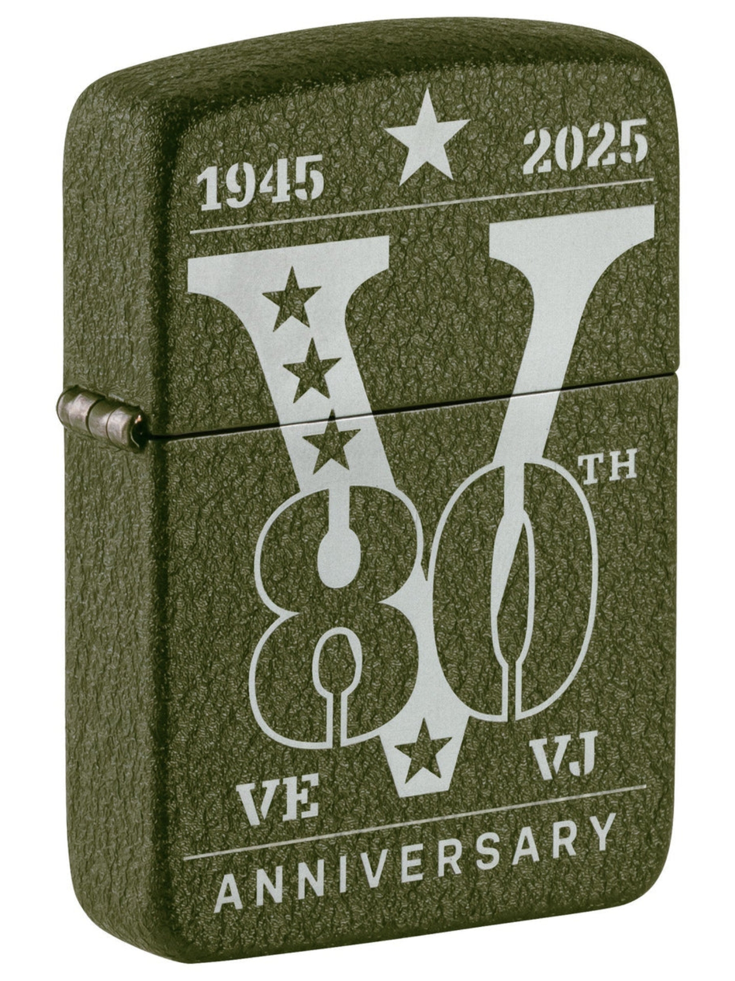 Zum 80 jährigen Jubiläum des triumphalen Ende des Zweiten Weltkriegs wurde dieses Sammlerstück aufgelegt. Das Sammler Feuerzeug besitzt erinnert stolz an das Ende des Krieges und ist auf 9000 Stück weltweit limitiert. Das speziell für diesen Anlass aus Stahl gefertigte Modell 1941 Replica ist eine Hommage an die Feuerzeuge, die amerikanische Soldaten während des Krieges bei sich trugen, und verfügt über ein lasergraviertes Jubiläumsdesign und eine erstmals verwendete Green Crackle-Oberfläche. Jedes der 9.000 nummerierten Sammlerstücke wurde zu Ehren dieses historischen Jubiläums hergestellt.