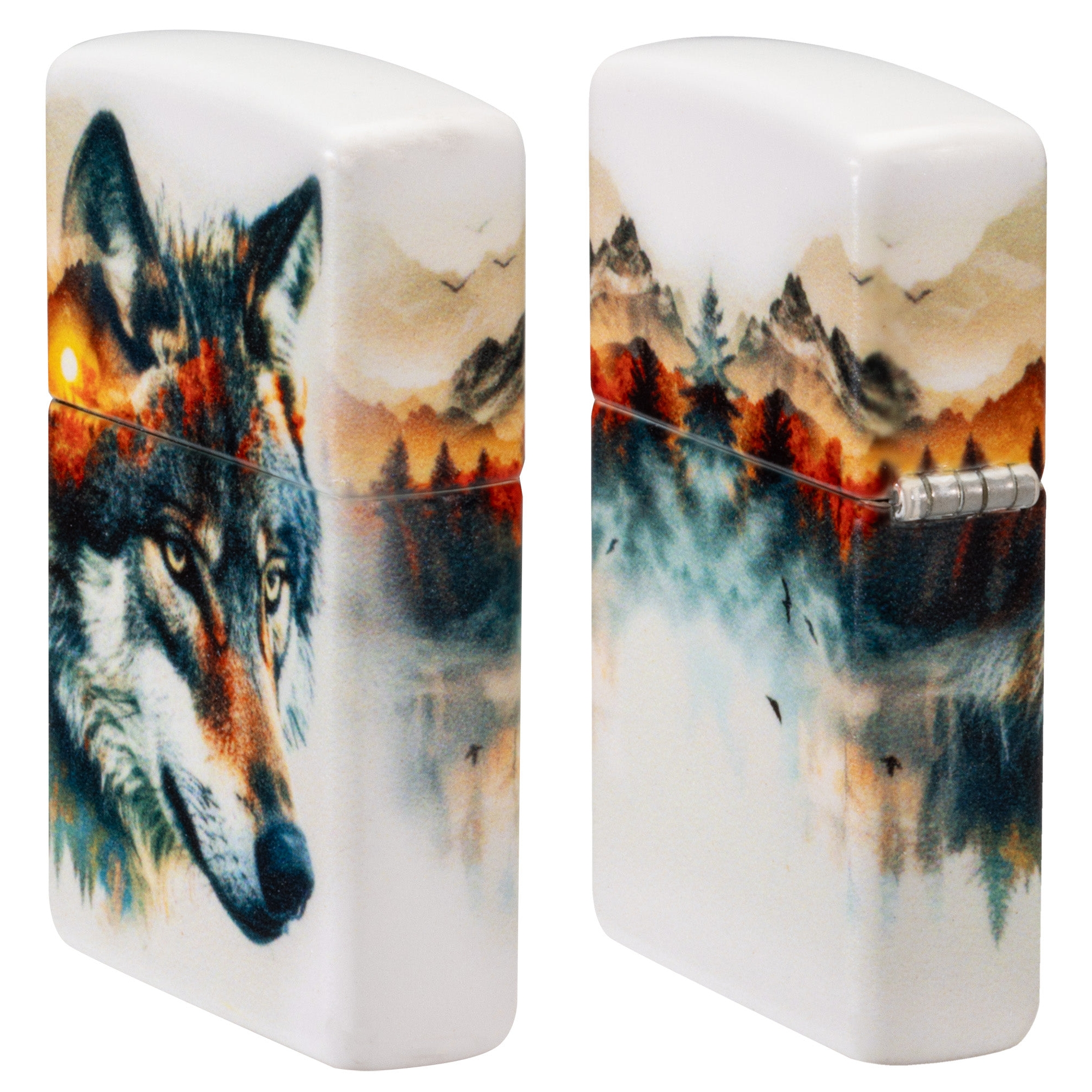 Zippo Wolf and Mountain rundherum mit 540° Farbbild - Sturmfeuerzeug mit Steinzündung und Softflamme